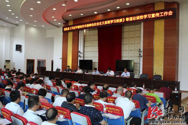 红网祁东分站8月22日讯:22日下午,祁东县《习近平新时代中国特色社会主义思想学习纲要》等理论读物学习宣传工作会在县政府七楼会议室召开。县委常委、宣传部长龙建程出席会议并讲话。